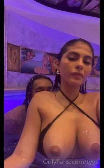 Och efter Amanda Trivizas avsugning och sexband har vi deras också läckta video från OnlyFans. Trivizas visade sina stora formade bröst och bröstvårtor. Tyga rör vid sin nakna kropp medan de njuter i poolen.