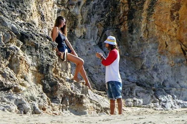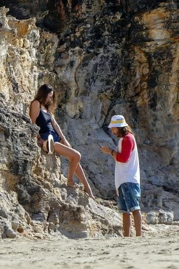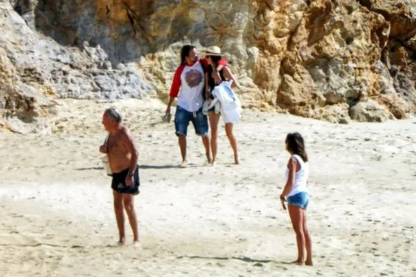 Den franska DJ Bob Sinclar och hans mystiska nya flickvän ses roliga vid stranden i St Barths, Franska Västindien. Den här december är het, men när Bob Sinclar tar av sig kläderna och visar naken kuk blir den ännu varmare. Här visade han naken tonad mage, snygg kuk, men tyvärr var han inte hård.