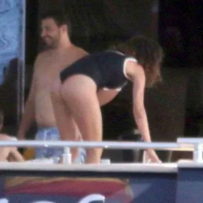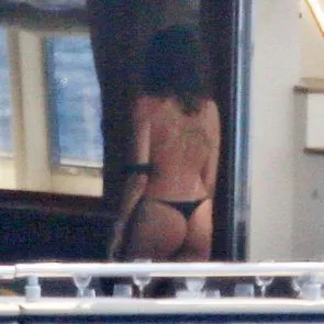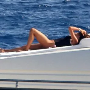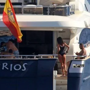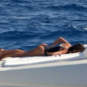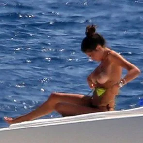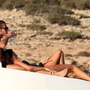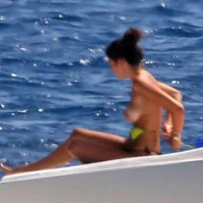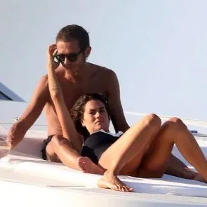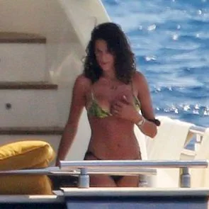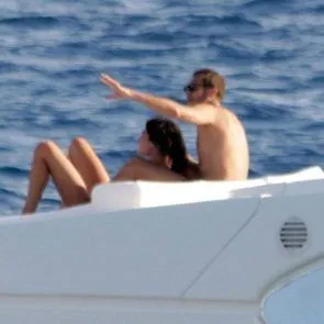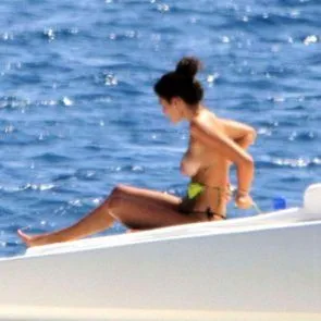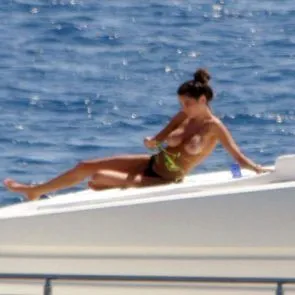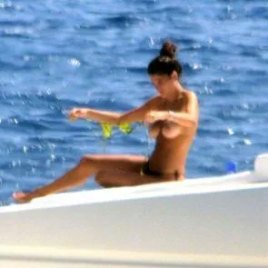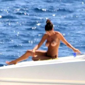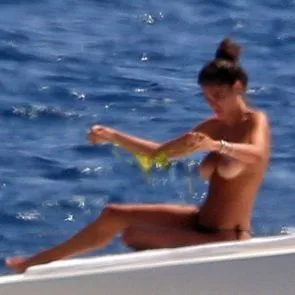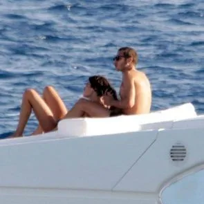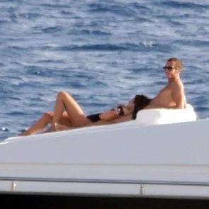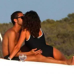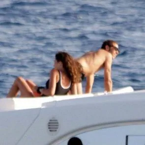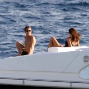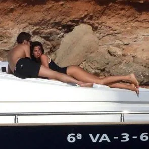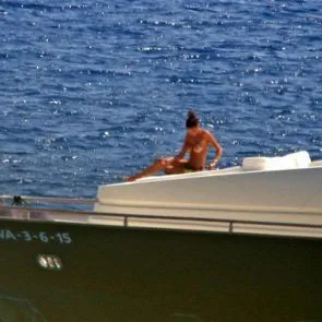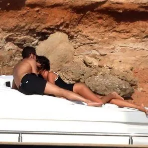 Paret sågs vid båten, Sofia var topplös och visade oss sina plastbröst. Valentino och modellen solade och visade lite PDA.