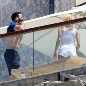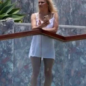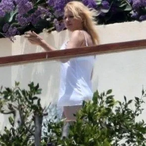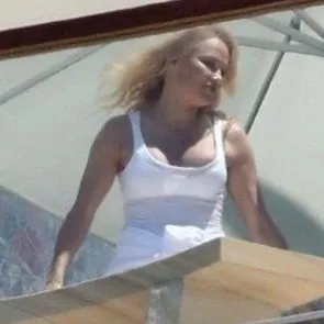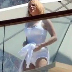 Bombshell, modell och skådespelerska Pamela Anderson nip slip hände medan hon inte förväntade sig. Paparazzi finns fortfarande överallt runt henne, trots att Pamela bara är en ful plastmormor nu! Paparazzi var bredvid Andersons herrgård och fångade henne med den franska fotbollsspelaren Adil Rami på och av! Paret hängde, solade och gjorde faktiskt inget intressant, och sedan boom! Pamelas bröst gled ut ur hennes vita bikini!