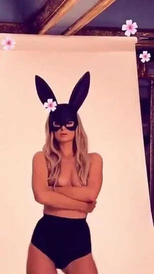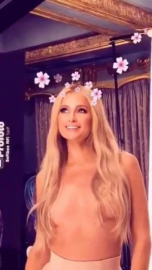 Paris Hilton delar också sina toplösa och sexiga videor på SnapChat och Instagram ... Här är skärmdumparna från en av hennes mest populära videor där hon poserade för Playboy och hennes bröst täcktes bara med långa hårförlängningar.